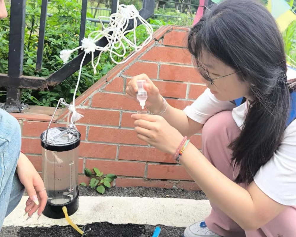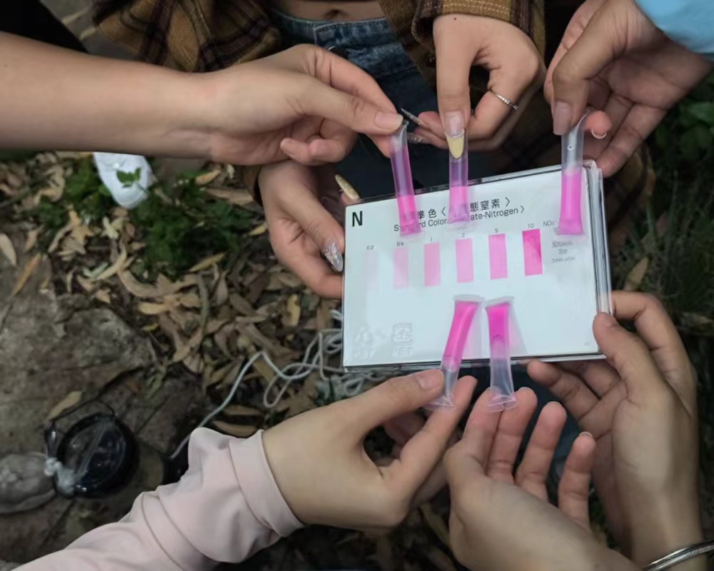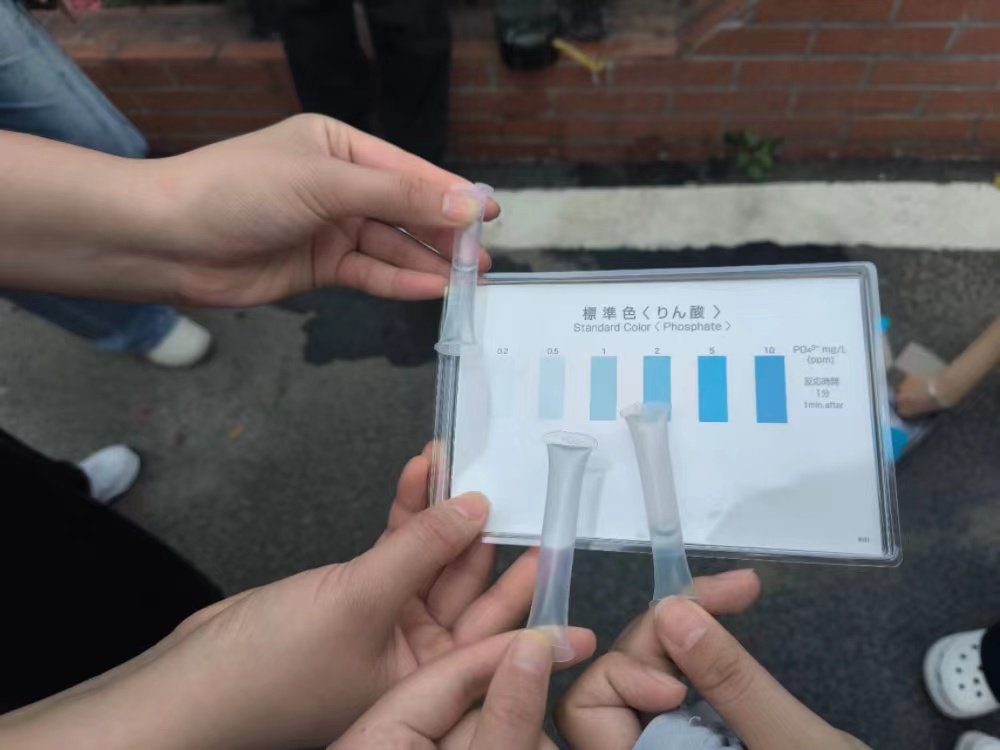 7月6日,创河小禹团队踏上了2024年的首次巡河之旅。他们从学校中门出发,沿着排洪渠细心布点,利用水质检测包对多处水样进行了氮、磷含量的快速检测。团队成员在队长李铮淇的指导下,从水渠中取样、加试剂、摇匀、等待反应,最后通过比色卡判断出水质情况。结果显示,该排洪渠的氮含量虽偏高,但磷含量处于较低水平,相较于往年数据,水质已有了显著改善,标志着水体环境正逐步向好发展。