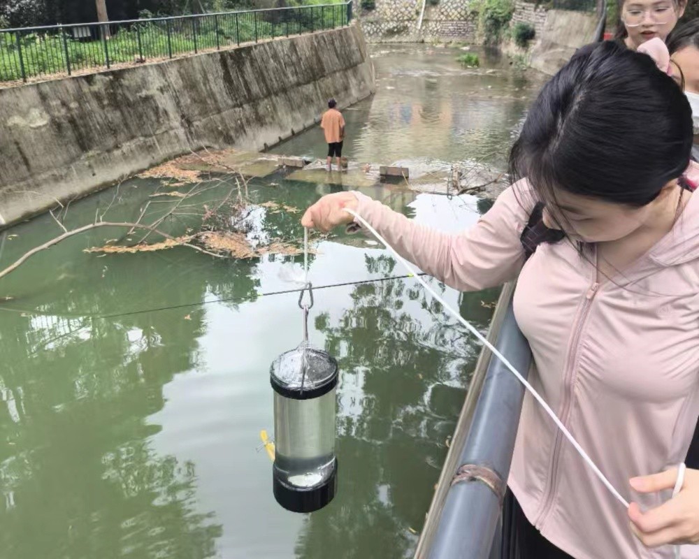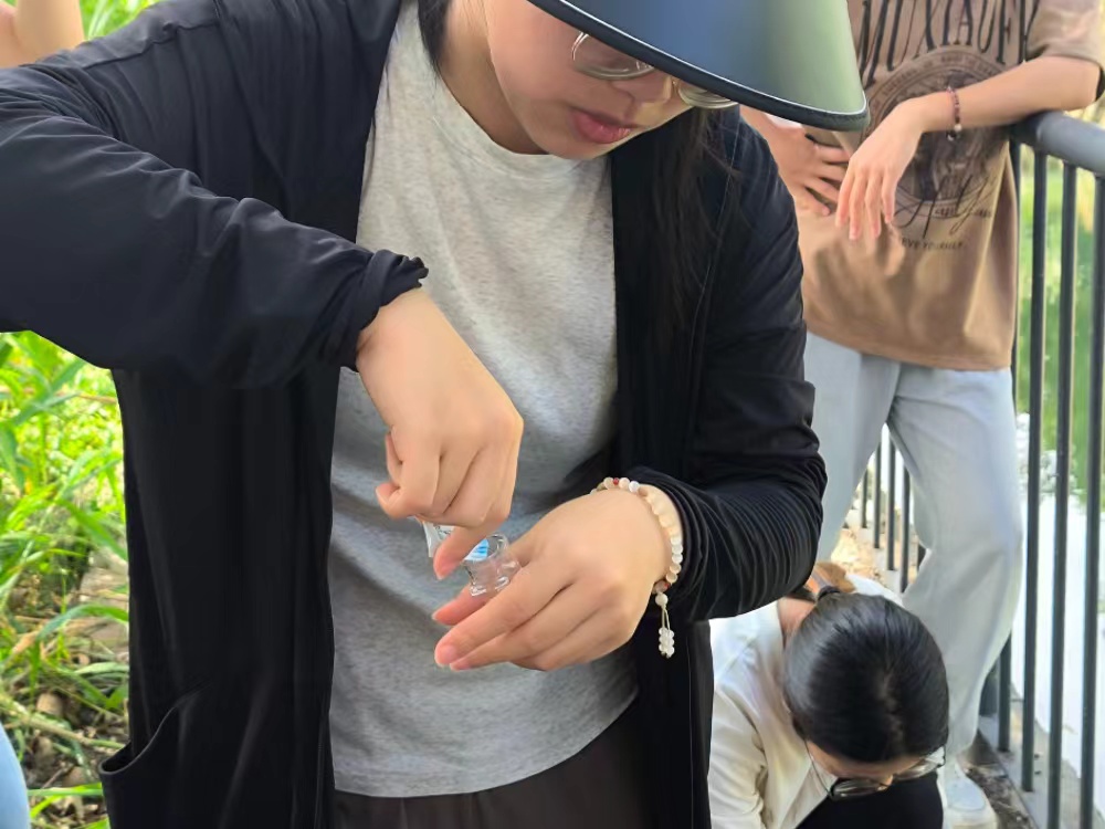 7月14日,绿创河小禹团队再次集结,前往排洪渠进行复测。此次,他们携带了更为先进的哈希DR900水质便携检测仪,重点对氨氮含量进行测量。在李铮淇的详细讲解下,团队成员们不仅学会了仪器的使用方法,还进行了亲自的操作,对各自采集的水样进行了现场检测。结果显示,氨氮及磷含量均较往年有了大幅的降低,水质状况进一步的好转,这得益于河长办持续有效的排污、清淤、活水综合治理的措施。