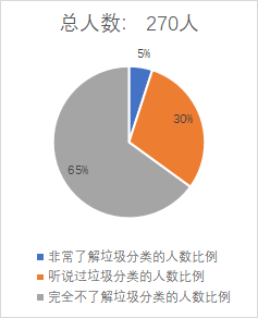 在采访的270名居民中,只有5%的居民非常了解垃圾分类,却又65%的居民对垃圾分类完全不了解。