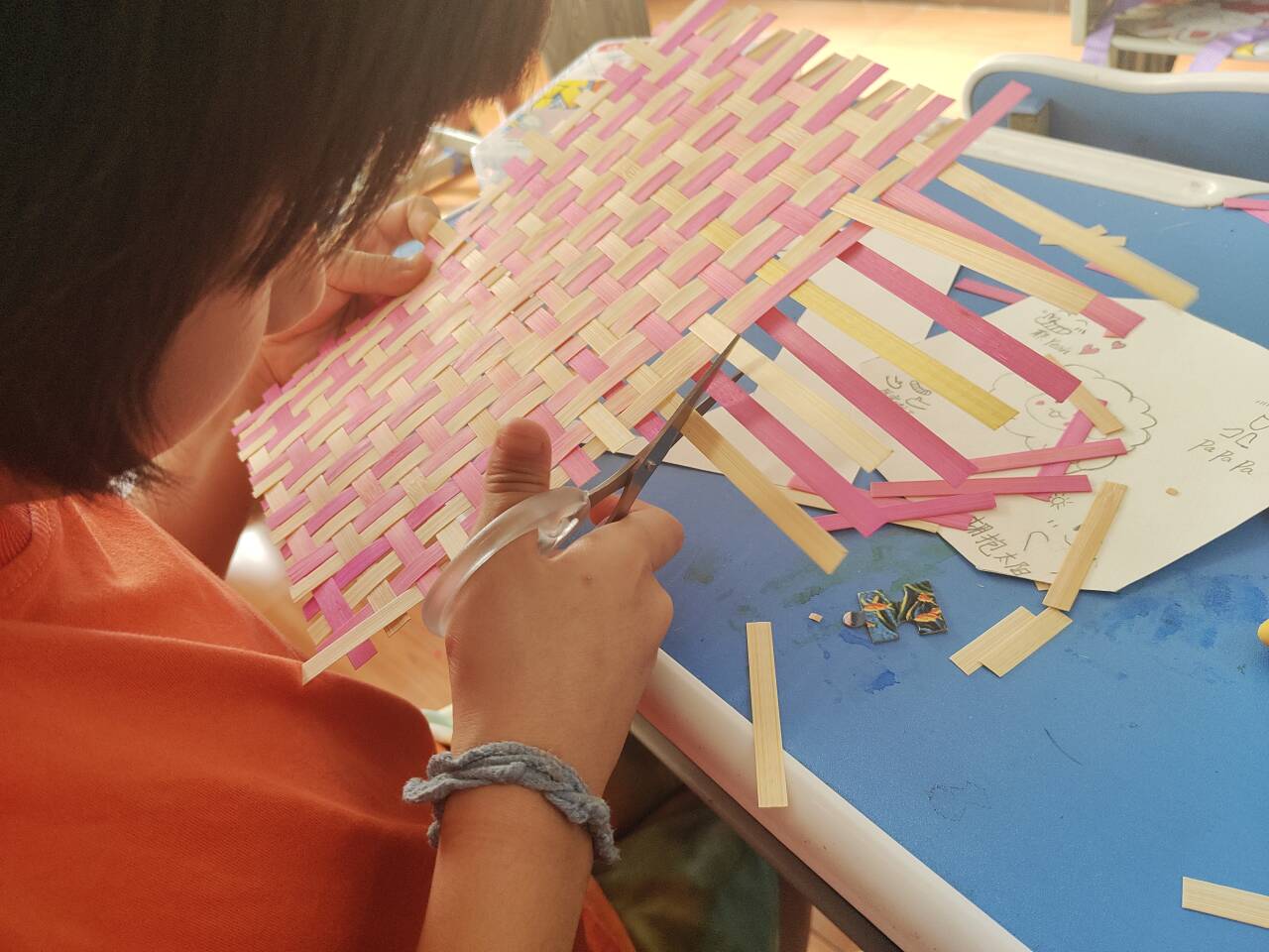 7月12日是池州学院“携爱同行,共‘护’未来”实践团来到池州未成年保护中心的第二天,虽然时间不长,但五名志愿者已经与未成年保护中心的孩子们结下了深厚的情谊。7月11日下午,实践团成员带领孩子们开展“非遗文化竹篾编扇”传统手工活动,志愿者们将制作步骤投影至屏幕,耐心地手把手教孩子们进行排列、压挑、描形与包边,竹条在指尖交互缠绕,散乱的篾片在孩子们手中慢慢有了形状,一个个小巧精美的竹扇逐渐成型,欢乐的笑声回荡在课堂。传统手工竹编丰富了孩子们对传统文化的感受,启发了他们的动手能力。志愿者阚圳秀说:“当孩子们向我展示他们的竹扇,并用竹扇为我扇凉,我内心感到非常的温暖。”