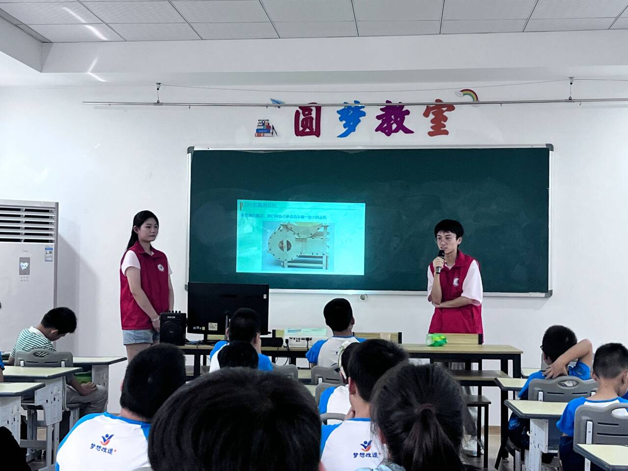 在制作过程中,孩子们纷纷动手操作,分解部件、粘贴、组装,每一个步骤都充满了乐趣和挑战。志愿者们则细心地在一旁指导,帮助孩子们解决遇到的困难。