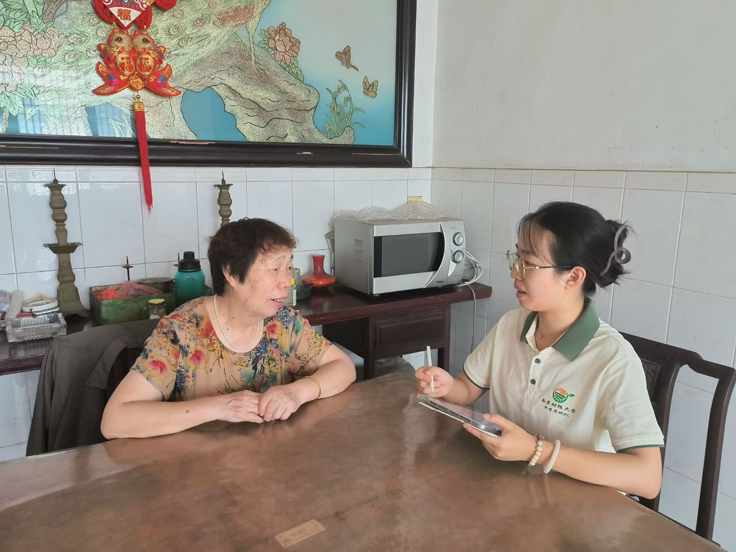 图为实践队员与村民进行访谈。 大学生网报通讯员 秦嘉悦 摄
