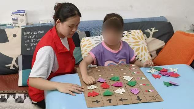 晚上,实践队员和老师们分组前往部分有需求的孤独症儿童家庭进行家访。他们携带着自制的教具,为孩子们提供了一对一的家庭数学指导,专注于培养孩子的图形认知、空间感知以及数学计算能力。通过这种亲切而专业的互动方式,不仅增进了家长与教育机构之间的沟通和理解,也为孩子们创造了一个更加适宜的学习环境。