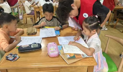 随后,志愿者分组为不同年级学生提供课业辅导。解答数学、语文等学科问题,并赠送学习用品,鼓励他们勤奋学习。