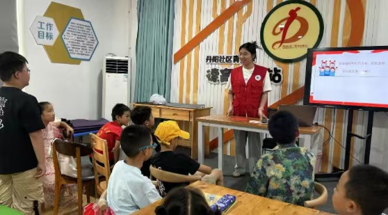 今日,橘徕服兮支教队在秭归县丹阳社区湖景天成幸福小区驿站开展主题支教活动。为开展以“弘扬两弹一星精神·点亮少年成长梦想”为主题的支教活动。通过问卷调查、课业辅导与特色课程相结合的形式,为孩子们带去知识与温暖。