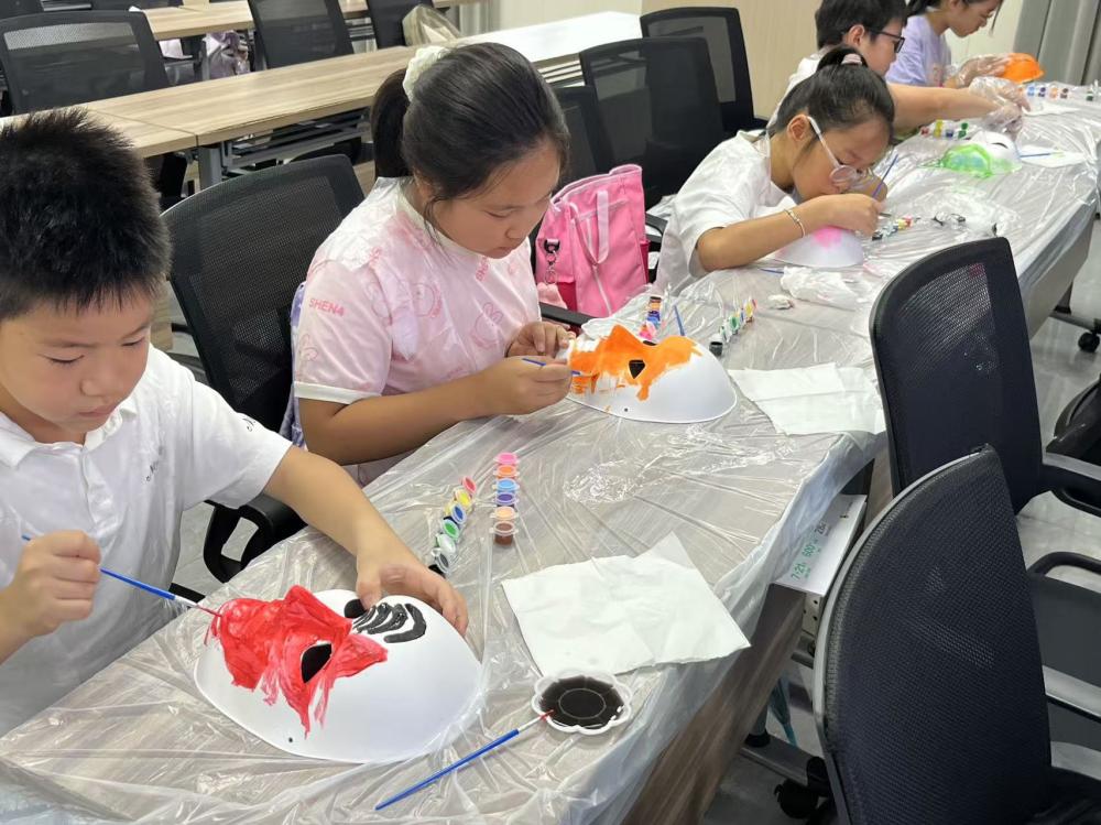 (图为社区小朋友正在绘制脸谱 许丽菲摄)