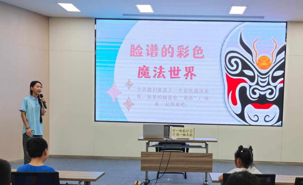 彩色魔法世界——脸谱艺术初体验 活动伊始,实践团成员以《脸谱的彩色魔法世界》PPT为引,带领小朋友们走进戏曲脸谱的奇幻世界。