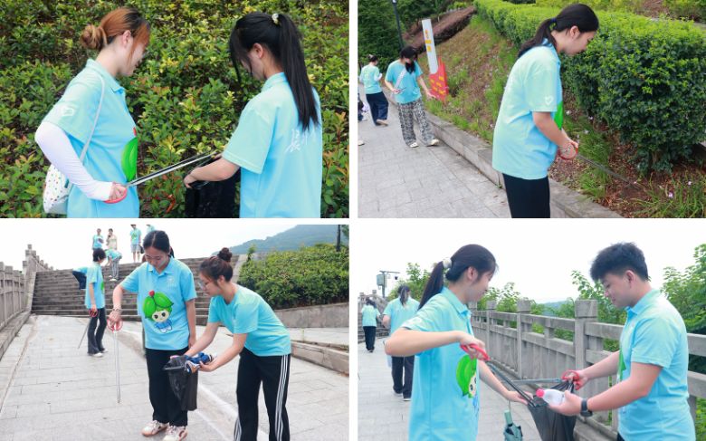 志愿者们手持铁钳,分工协作,细致清理石缝中、溪岸边及各个角落的废旧纸张、烟头,并将拾取到的垃圾统一装入黑色垃圾袋中。他们以实际行动为社区居民营造整洁优美的生态环境,改善梨香溪沿岸的环境卫生。