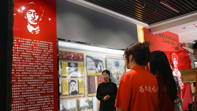 在展览过程中,实践团成员们不仅认真听取了讲解,还与纪念馆的工作人员进行了深入交流,了解更多关于吴焕先烈士的历史事迹和精神内涵。工作人员介绍道,吴焕先烈士为中国革命事业付出了巨大牺牲,他的英勇事迹鼓舞着一代又一代的中华儿女。尤其是在长征期间,他指挥了多次重要战役,为人民的解放事业做出了杰出贡献。