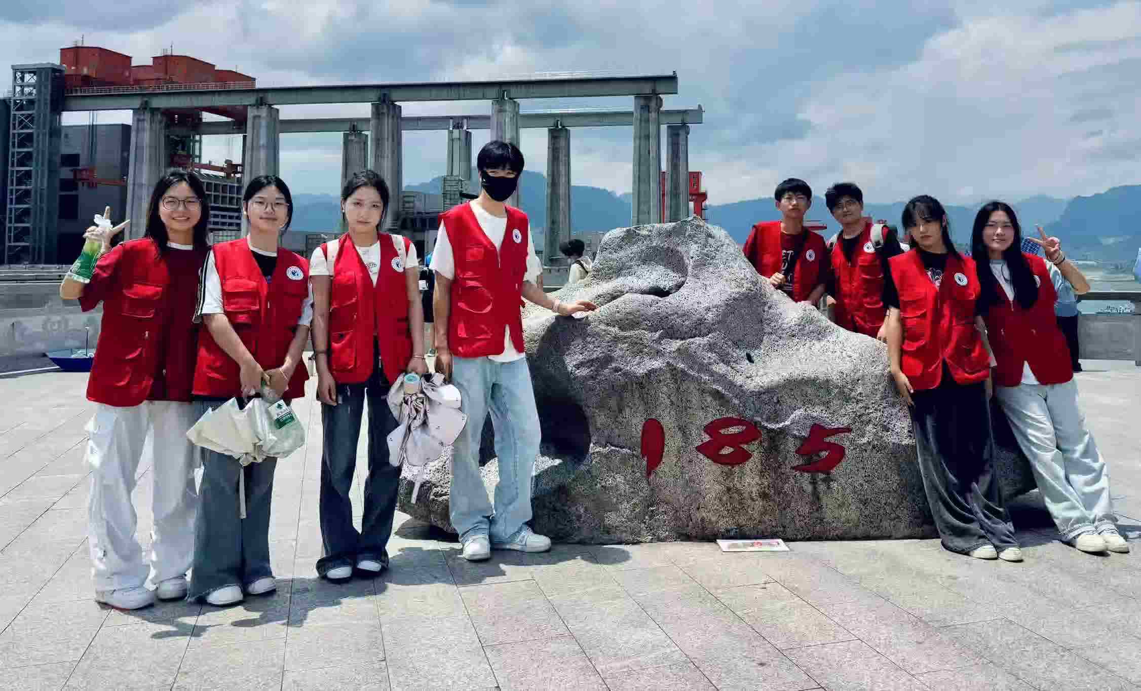 2025年7月10日上午10点20分,武汉东湖学院管理学院橘徕服兮实践队探访三峡大坝旅游区从宏观震撼到微观理解,队员们在沉浸式探访中深化了对三峡工程的立体认知。