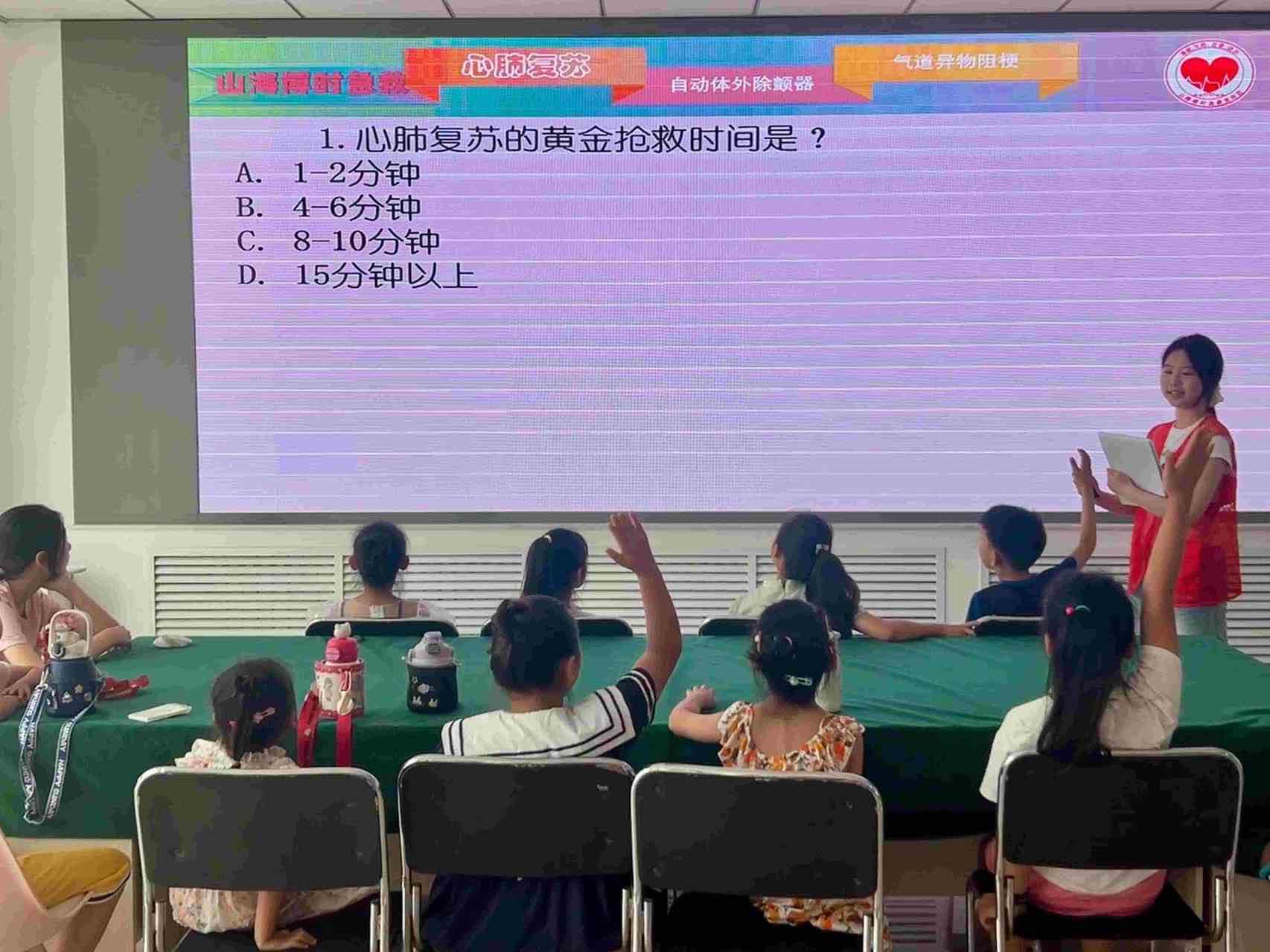 2025年7月12日,山东大学(威海)山海博时急救宣传团走进山东省威海市怡园街道滨州街社区,以“救在身边,安全一夏”为主题,为辖区小朋友带来一场兼具知识性与趣味性的急救科普活动,用专业行动筑牢暑期安全防线。