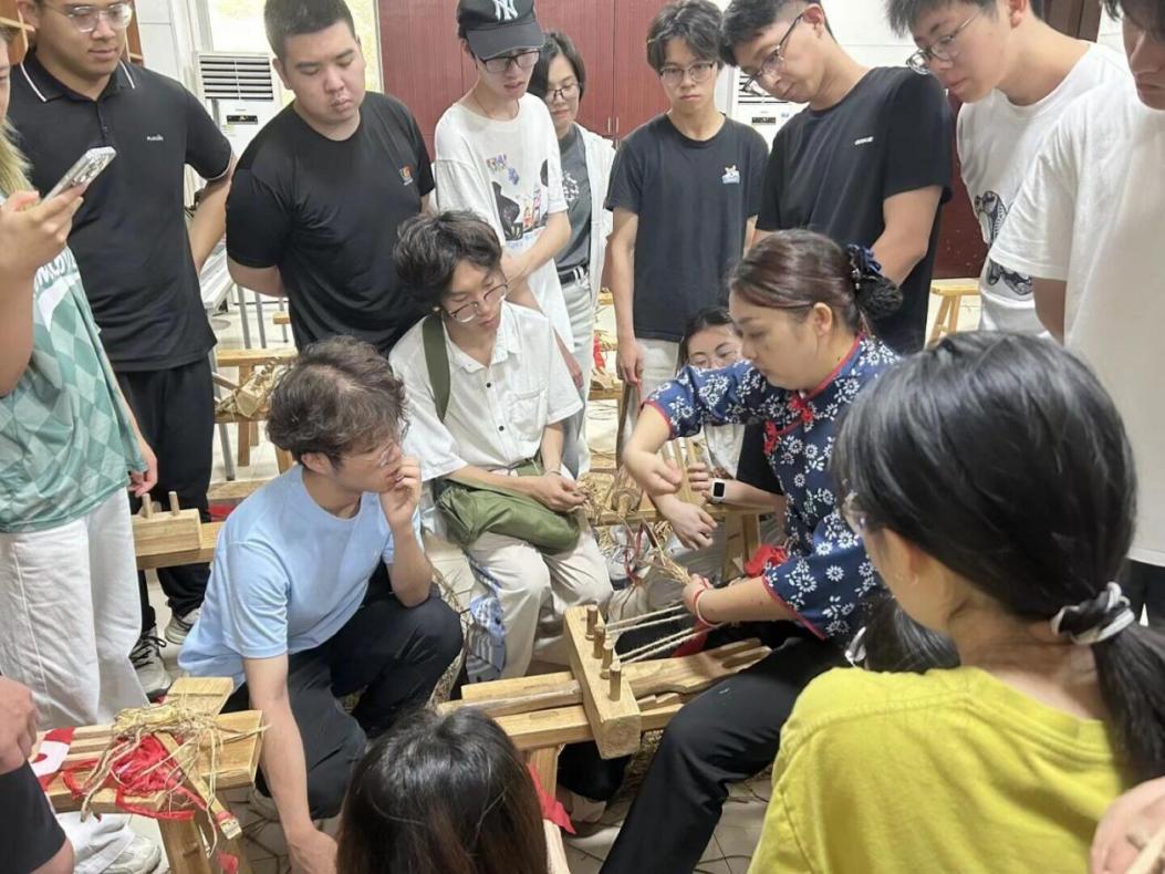 7月8日的草鞋课堂上,学员们在聆听讲解后开始动手实践。从搓草绳的生疏到编鞋底的专注,食品科学技术学院食安2303班周嘉欣的手掌被磨出红痕,却笑着感悟:“