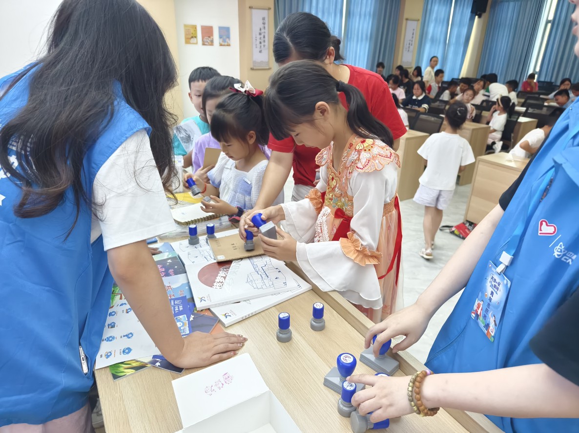 活动尾声,陈家冲社区负责人郑群主任为参与学生加盖了纪念活动特色的印章。