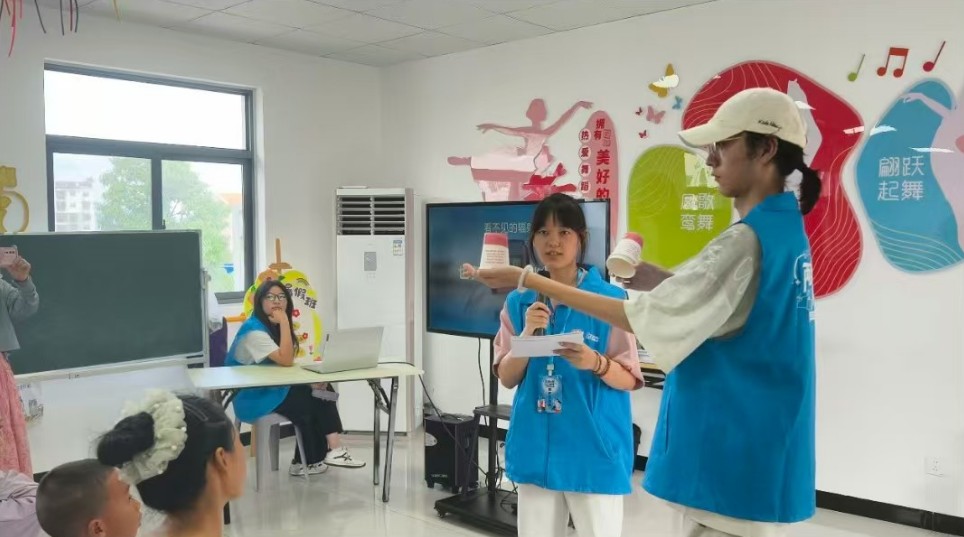 宣讲团队员刘洋硕通过充满童趣的互动环节调动了小朋友们的积极性,寓教于乐。