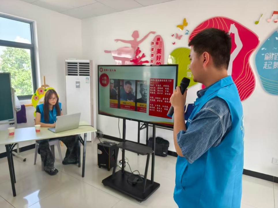 2025年7月12日,武汉东湖学院橘徕服兮实践队“两弹一星”精神宣讲团来到了宜昌市秭归县陈家冲村便民服务站进行核污染以及“两弹一星”精神相关知识的宣讲活动。