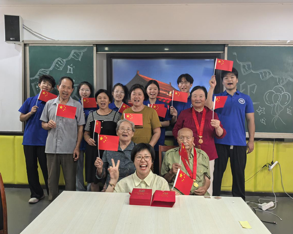 宣讲团成员们带领老人们一起合唱《歌唱祖国》、《没有共产党就没有新中国》等经典红歌。熟悉的旋律唤起了老人们的共鸣,他们精神矍铄,歌声饱含深情,不仅唱出了对党和祖国的无限热爱与祝福,更展现了新时代老年人积极向上的精神风貌,同时也让青年学子们深刻感受到革命精神的传承与力量。