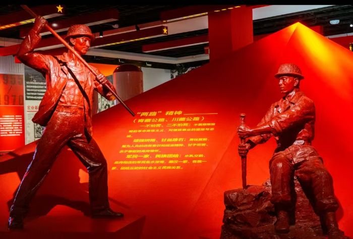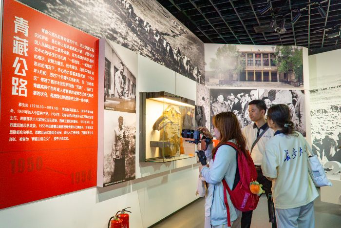 在“红旗漫卷西风——青海革命文物展”专区,队员们重点了解了青海地区在革命、建设时期的发展历程,特别是青藏公路等重大工程建设中,各族建设者们克服高寒缺氧、地质复杂等困难,创造的人间奇迹。