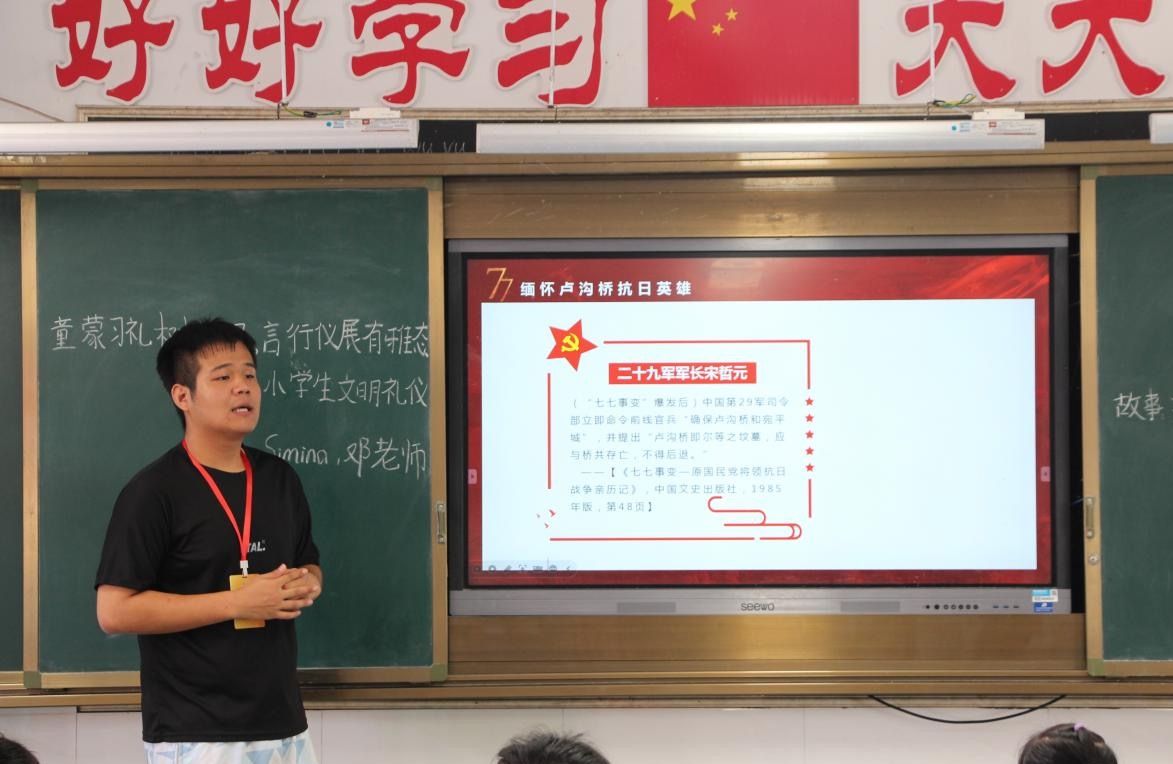 B班的礼仪课像一场生动的“文明闯关”。邓雪芳老师刚抛出 “孔融让梨为什么被称赞”的问题,孩子们就炸开了锅。“因为他懂礼貌!”“他把好的留给别人!”顺着这个话题,老师教起了最实用的礼仪:递东西时双手托举,说话时看着对方的眼睛,坐姿要 “腰背挺直像小松树”。