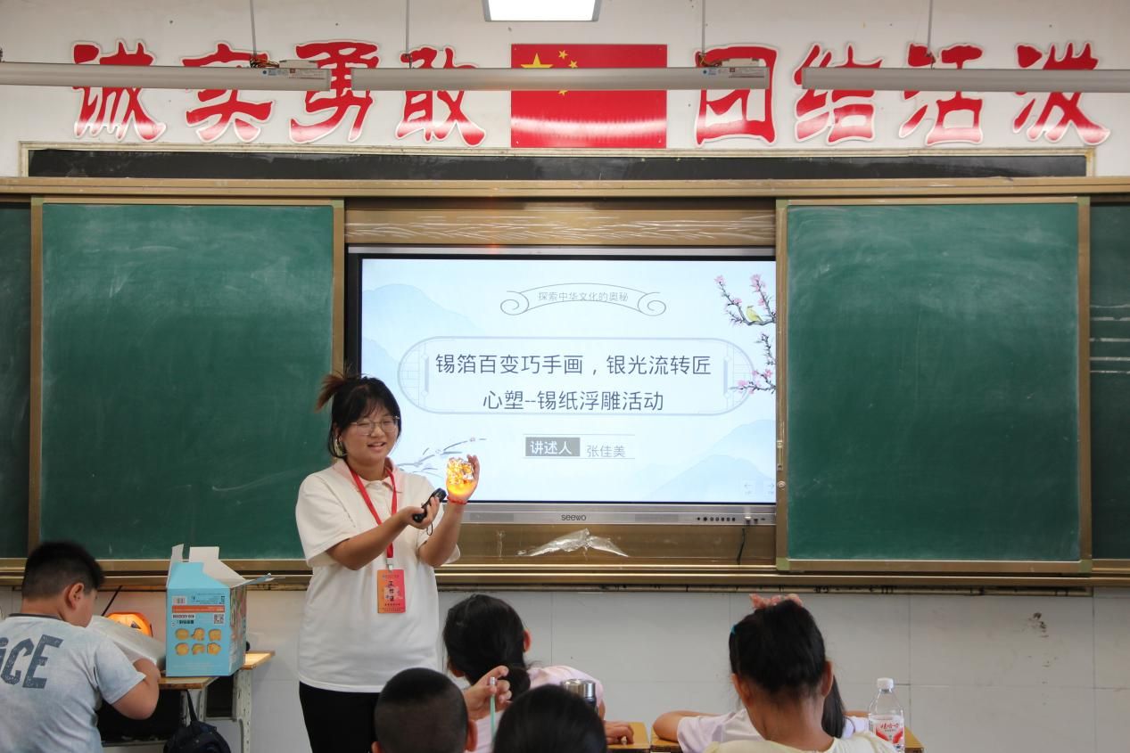 当这些立体而生动的作品一一呈现时,教室里响起了阵阵惊叹声和掌声,每一件作品都彰显着同学们的创意。当所有作品都被摆放上台时,阳光透过锡纸,在墙上投下了星星点点的光斑,这场景仿佛展现了孩子们眼中闪烁的创造力。