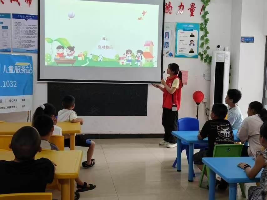 7月9日上午9点,活动在“拍手歌”中开始:“你拍一,我拍一,霸凌行为要警惕;你拍二,我拍二,遇到欺负不害怕……”孩子们跟着节奏拍手,很快进入状态。