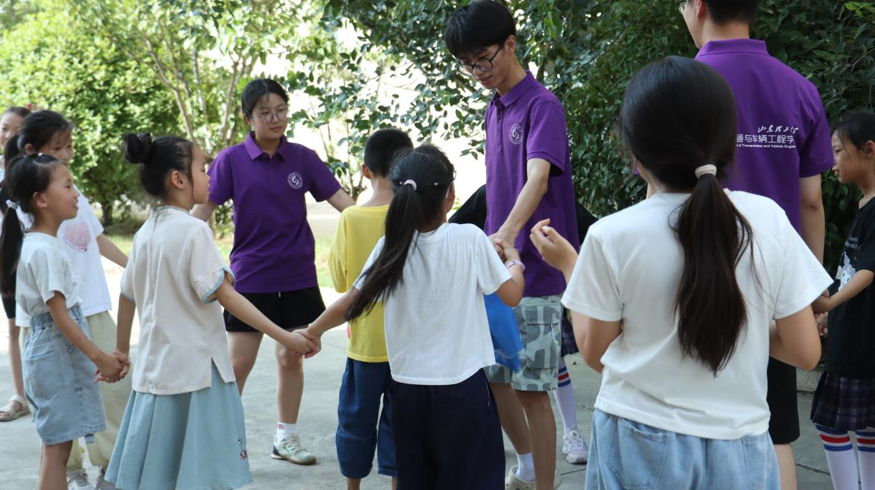 夕阳温柔地拥抱操场,为奔跑后的孩子和志愿者们镀上金色的轮廓。当足音渐远,校园复归宁静,但那浸润过汗水与笑语的每一寸土地,分明记录着心灵的拔节生长。这堂室外活动课点燃的不只是运动的火种,更在“圆梦”实践团与荷韵小学孩子之间,系起了一条无形却坚韧的情感纽带,共同书写着彼此温暖、相互照亮的故事。