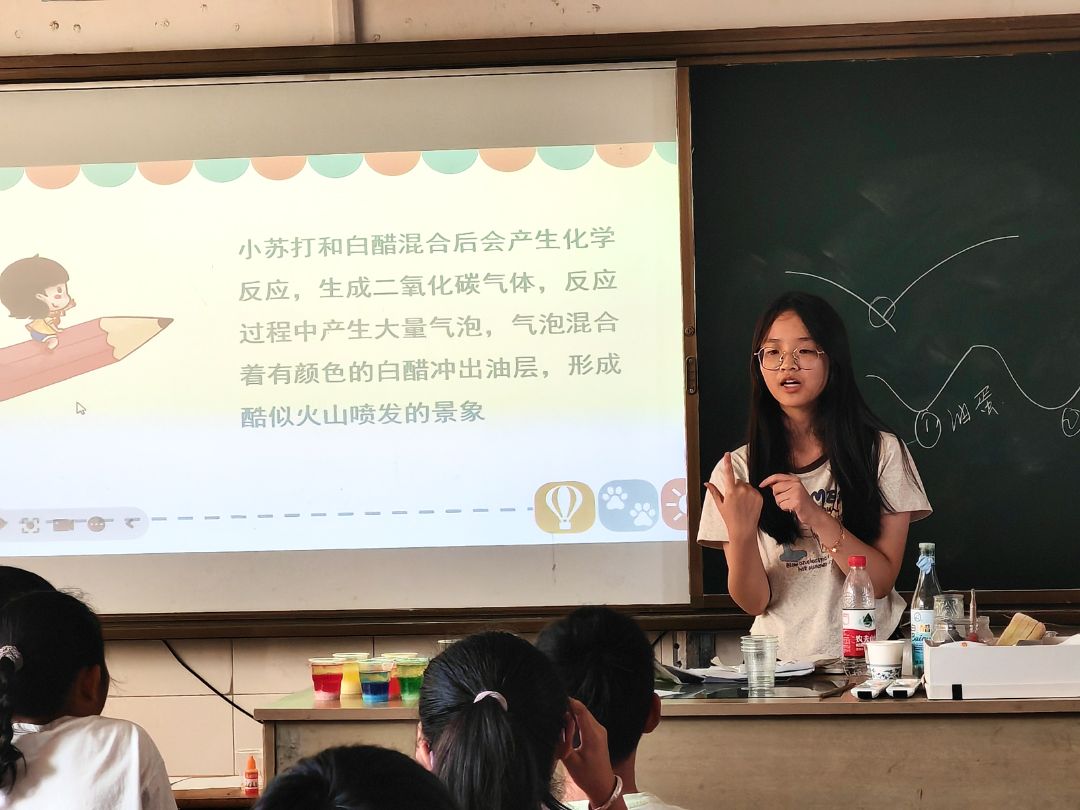 最后一节课以“海底火山爆发”和“彩虹泡泡龙”两个趣味实验为核心,带领学生们探索科学奥秘。在“海底火山”实验中,学生们通过小苏打与白醋的反应,模拟了火山喷发的场景,并理解了密度与化学反应的原理。