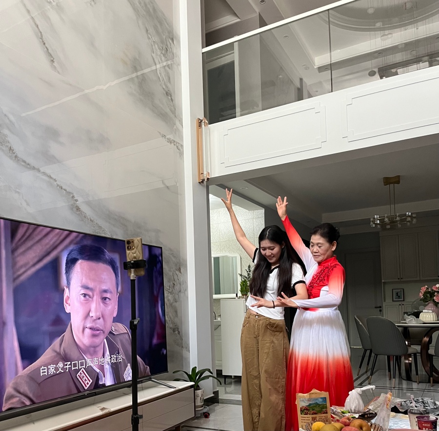 刚进门,李萍奶奶便身着整齐的舞蹈服,精神矍铄地站在客厅中央。她笑着说:“来,孩子,奶奶先给你跳一段最近排练的舞。”随着轻快的音乐响起,李奶奶舒展双臂、迈开舞步,旋转、跳跃间丝毫看不出岁月的痕迹,每一个动作都充满活力与韵味,仿佛将人带入了灵动的舞蹈世界。