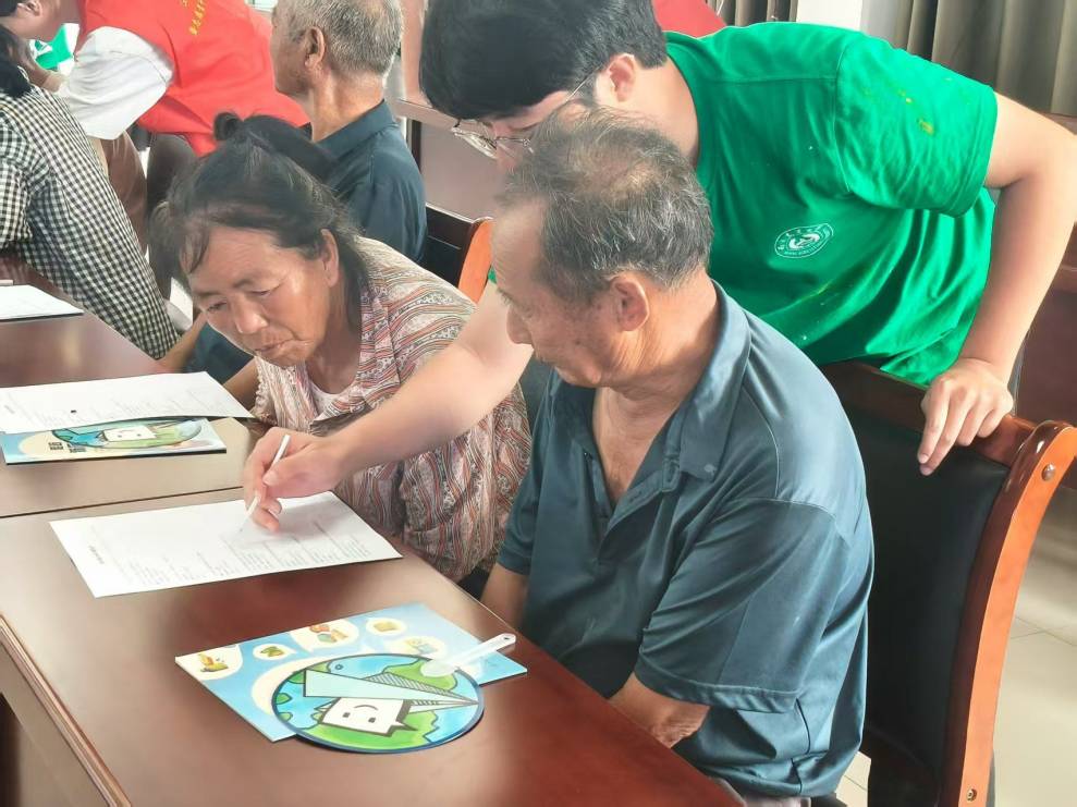 除了以画笔装点乡村,实践团还进行了多维度的实践活动。团队不仅聚焦生态理念普及,组织开展了面向徐庄村村民的垃圾分类专题宣讲会;深入解读分类方法,提升村民环保意识。而且同步进行问卷调查并发放环保知识传单,广泛采集村民意见,传递绿色生活信息,使环保理念更加贴近现实生活。