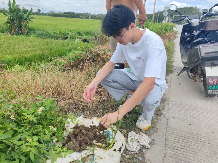 在与农户交流中,一户农户反映近年水稻病虫害严重,施用农药效果甚微,他还向队员们展示了所用灭虫害药物。在该农户带领下,队员们前往稻田实地考察,采集病叶样本和土壤样本,计划后续联合指导老师深入研究该病虫害及当地土壤富硒情况,用专业知识减少农户经济损失。