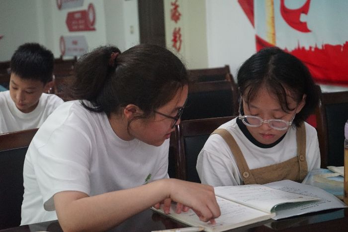 作业辅导,助力成长。实验结束后,实践团成员转入作业辅导环节。针对同学们在数学、语文等学科中遇到的难题,成员们一对一进行讲解,通过启发式提问引导大家独立思考。整个辅导过程氛围轻松,同学们的提问积极性高涨。
