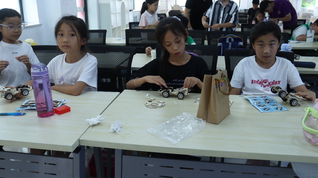 “荷风载笑语”是现场最生动的写照。阅览室外夏荷飘香,阅览室内笑语盈盈。当孩子们亲手组装的小车成功在地面上跑动起来时,成功的喜悦和自豪感洋溢在每个人的脸上。这不仅是一堂手工课,更是一次梦想的播种。通过亲手“造车”,孩子们直观感受到了机械的魅力,锻炼了动手能力、空间思维和解决问题的能力。同时,“圆梦”实践团成员也在与孩子们的互动中深化了对专业知识的理解,提升了沟通与组织能力,践行了服务社会、奉献青春的实践精神。