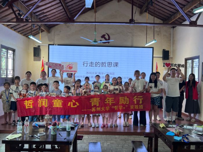 为把抗战精神种进童心,让哲学思考扎根田野,2025年7月10日,苏州大学“哲学+”实践团深入吴江区震泽镇金星村、齐心村、众安桥村开展实践活动,活动旨在纪念抗日战争胜利暨世界反法西斯战争胜利80周年,带领当地小朋友学习抗战历史,培养家国情怀与思辨精神;调研新农村发展现状,看当地如何在“守正”与“创新”之间觅寻一条“文化传承与产业振兴”互融共生的特色发展之路。