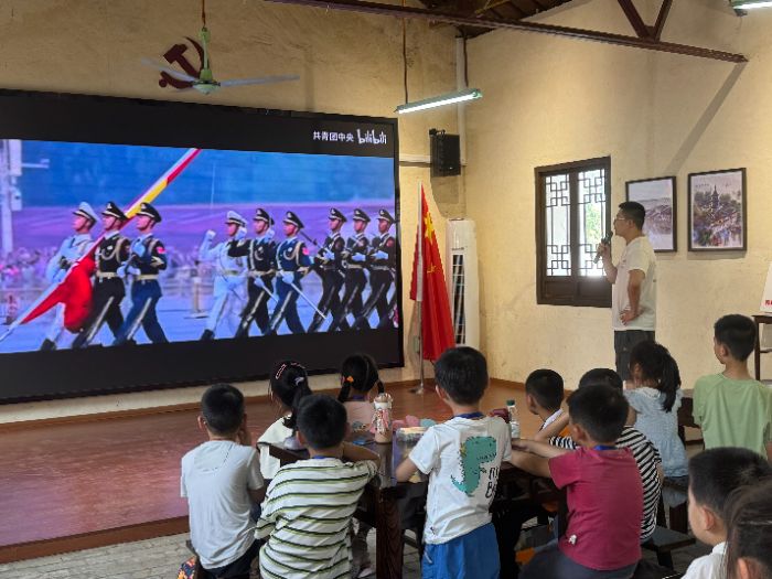 随后,实践团前往金星村党建小院以别开生面的互动哲思课为媒,带领当地儿童重温抗战历史。活动采用“诵读+观影+思辨”的创新模式,通过互动对话的特色形式激发青少年的历史思考。