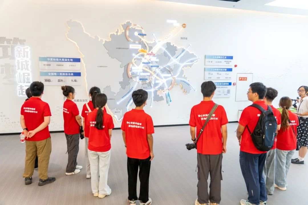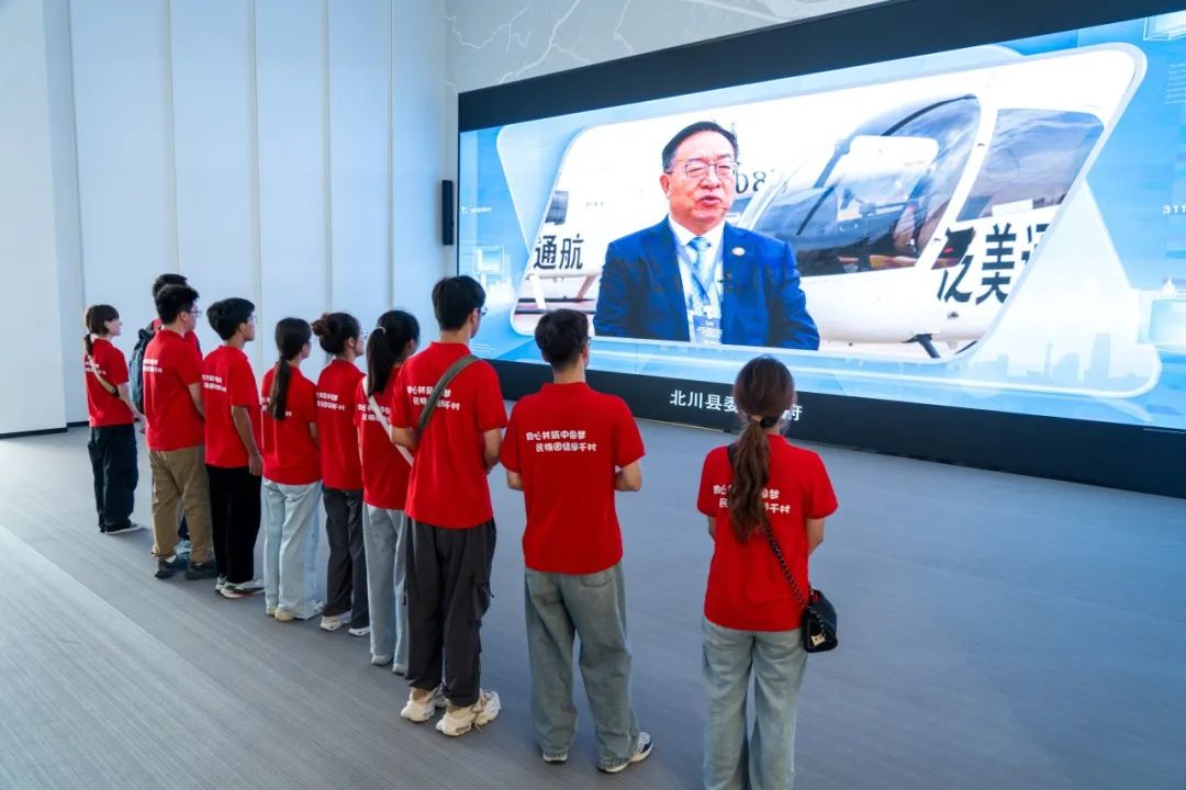 随后,实践队转访北川通航展示中心。讲解员由开场影片引入主题,从“新城崛起”板块讲起,详细介绍了北川如何以永昌机场为支点,打造“天空之城”产业规划,吸引航空培训、飞机制造等企业入驻。展区内,航空模型、地方特色“五个一”等各具特色的文创产品,推动文旅融合。