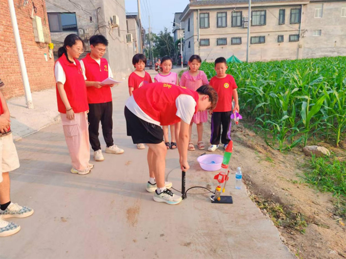 科普课程里亮点纷呈。“化学火山喷发”实验中,当五颜六色的“岩浆”喷涌而出时,孩子们的眼中满是惊喜;水火箭制作课上,大家亲手组装模型,户外发射时的欢呼声响彻村庄。
