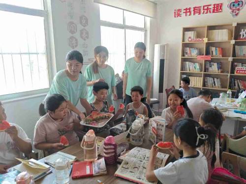 7月22日,山东理工大学“春风拂柳”实践团在山东省泰安市洼子村村委会开展乡村振兴实践活动。实践团成员与洼子村相关负责人为村内学生群体分发西瓜,以实际行动表达对乡村青少年成长的重视与生活关怀。
