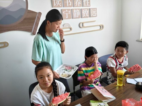 活动期间,实践团成员和村子为学生提供西瓜等消暑水果保障基础需求。村长与实践团成员开展深入交流,收集学习进度、生活困难等具体信息;实践团成员依托知识储备,结合趣味故事开展课业辅导与知识拓展。行动进一步补充学生实际状况的信息库,为帮扶措施的针对性优化提供补充依据,同时有效拓宽学生的知识接收渠道。