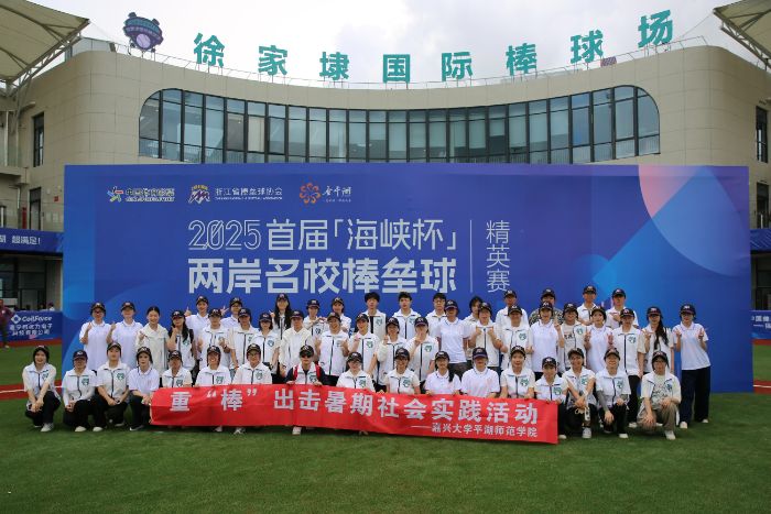 与此同时,团队的另一批成员则以志愿者的身份,深度参与到在浙江嘉兴平湖全新落成的徐家埭国际棒球场开幕的2025首届“海峡杯”两岸名校棒垒球精英赛中。作为一场汇聚了海峡两岸15支名校代表队、300余名棒垒球精英选手的高水平赛事,“海峡杯”不仅是竞技的舞台,更是两岸青年交流的纽带。志愿者们在赛事期间分工明确,确保比赛顺利进行,积极承担选手引导、信息核对等工作,用细致的服务保障赛事高效运转,协助组织互动活动,优化两岸棒球文化交流平台。