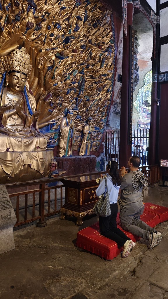 参观精美的石刻造像、了解石刻背后的文化内涵、欣赏多样的文创产品、观看4K和8K电影、体验VR《无面之神》,从实地探访到数字体验,从文化载体到游客反馈,“智”绘石刻队愈发清晰:大足石刻的传承,既要守好“石刻本体”的根,也要用好“数字技术”的翼,更要贴合公众对“易懂、有趣、可及”的需求。