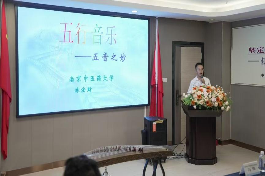 主题讲座中,林法财老师以“中医五行音乐在临床中的应用”作主题讲座,系统阐释五音疗法调节情志的作用机制与临床实效,中国中医科学院张竞之老师现场配合曲目演奏古筝,现场参会人员围绕五行音乐医疗应用、未来临床前景展开热烈研讨,氛围热烈。