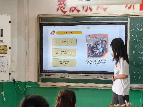 7月9日,江苏科技大学"悦读传心 语你童行"志愿服务团的队员牛禹默走进河北省保定市颉庄小学,开展了"悦读传心 语你童行"和"心为善使 博爱红十"主题宣讲活动,为六年级学生带来了一场别开生面的知识课堂。
