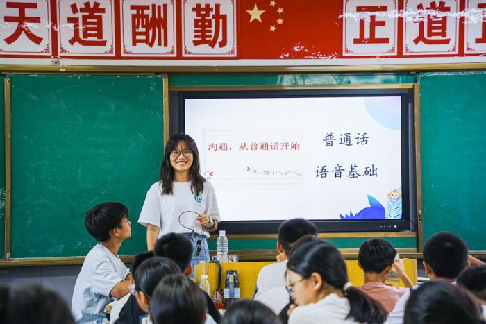 为深入贯彻国家语言文字政策,近日,华中师范大学城市与环境科学学院“经纬拾光”实践队于河南省南阳市唐河金桥学校开展普通话推广专项行动。实践队通过创新课程设计、方言难点攻坚、情景实践应用三大模块,着力提升学生语言应用能力,积极营造文明和谐的校园语言环境。