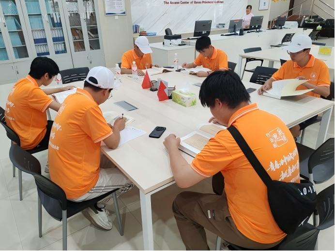 图为实践队员们在摘录抄写 通讯员 魏煜彬 供图