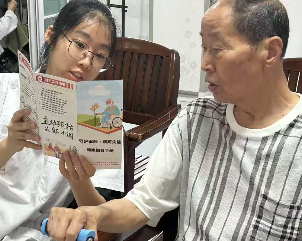 健康宣教:通过自制的《预防失能宣传手册》,以图文结合的方式向老年人及家属讲解失能风险因素,例如“如何通过调整家居环境预防跌倒”“老年人每日蛋白质摄入标准”“长期服药者如何避免重复用药”等实用知识。同时,团队与浙大二院老师合作,为受访老人建立健康档案,方便后续社区卫生服务中心跟进服务。