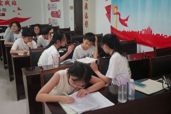 学业护航,温故促知新。下午,实践团将重心放在学业辅导上,针对同学们暑期作业中的薄弱环节进行查漏补缺。成员们一对一解答数学公式运用、语文作文构思等问题,通过细致讲解帮大家攻克难题。