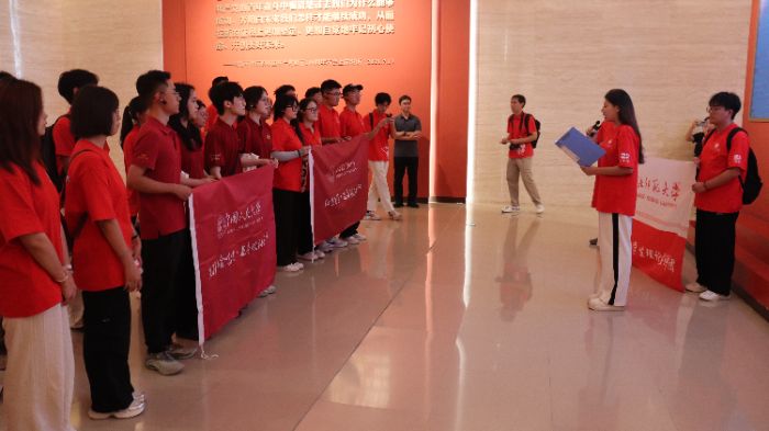 巍巍宝塔山下,红色血脉奔涌不息。7月22日,西北师范大学“追寻红色足迹、赓续延安精神”暑期社会实践团携手中国人民大学、西安电子科技大学实践团队,在延安革命纪念馆开展了一场跨越校际的青春寻访与精神对话,三校青年共同踏上了一堂厚重而鲜活的思政实践课。