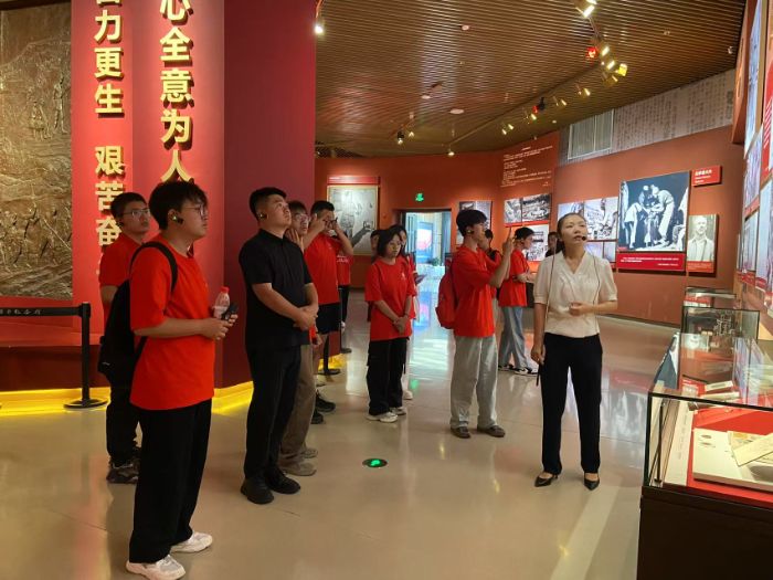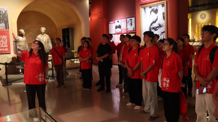 作为中国革命的精神地标,延安革命纪念馆内陈列的每一件文物都是无声的史诗。三校青年并肩穿行于历史长廊,在泛黄的电报、磨损的军装、珍贵的照片前驻足凝望。西北师大“小红马”讲解员,将课本中的历史转化为馆藏文物背后的动人故事:“这张简陋的木桌,曾是党中央运筹帷幄的指挥台;这盏斑驳的马灯,照亮过整风运动的深邃思考。”人大同学感叹:“触摸历史实物,才真切感受到延安时期的艰苦卓绝与信仰光芒。”西电学子则在发报机前久久驻足:“科技报国的种子,早在战火纷飞的窑洞里就已萌芽。”