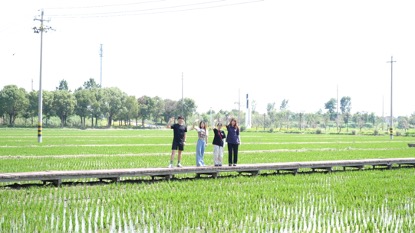 7月23日,嘉兴大学鹊禾项目团队走进嘉善县西塘镇红菱村,在这片金色的稻浪中,发现了一个传统农业与现代创意完美融合的乡村振兴典范。短短两天的调研,让团队成员们见证了"一粒米"如何通过跨界融合,演绎出乡村振兴的无限可能。
