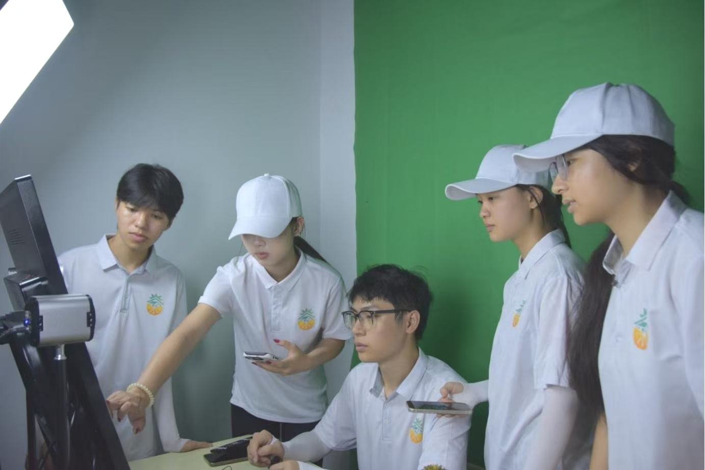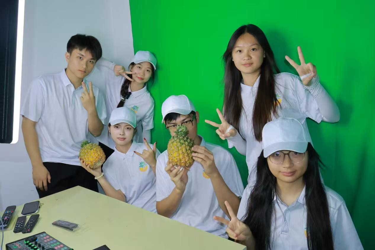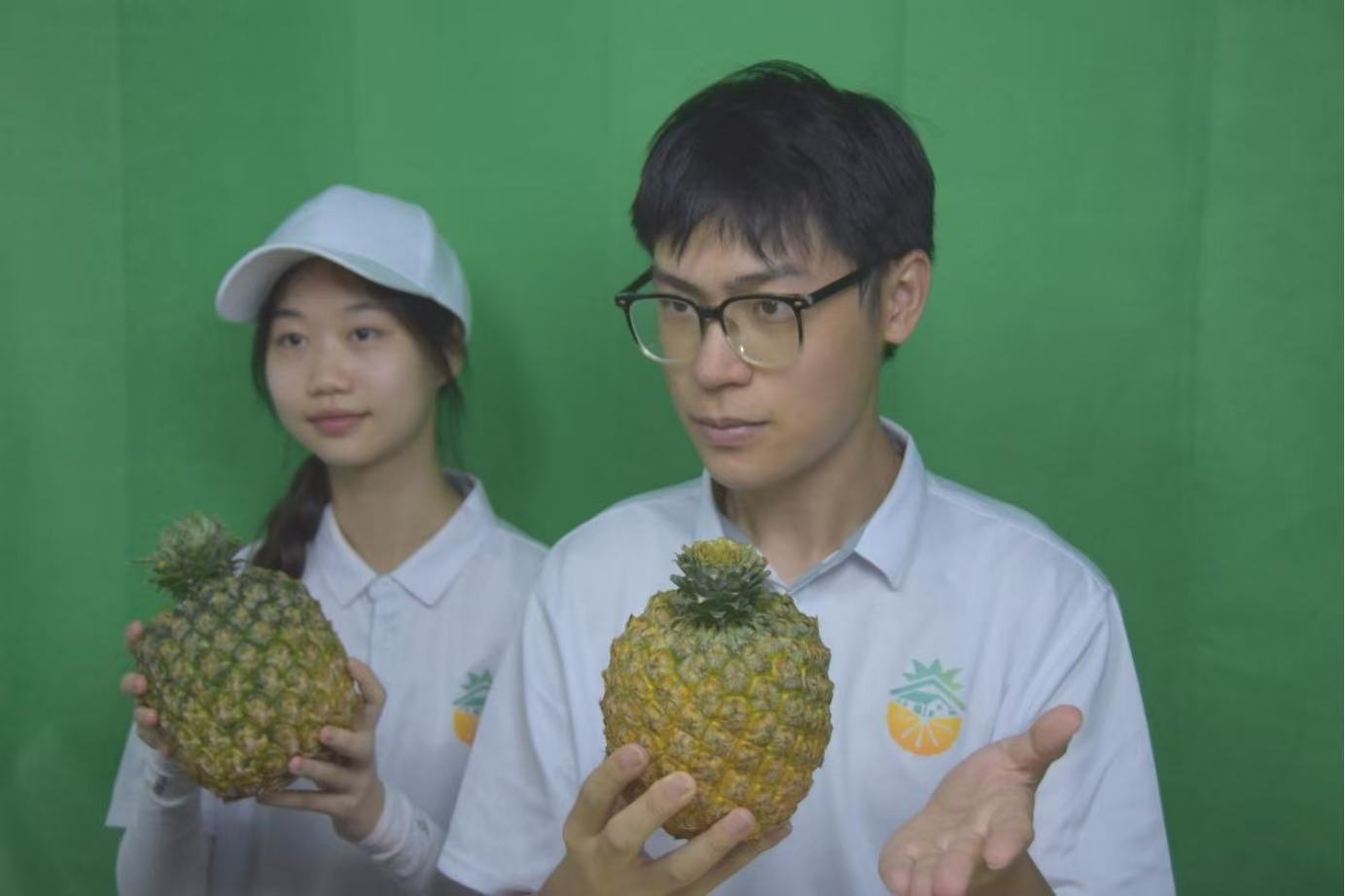 抵达果园后,在队长的指导下,队员们迅速进行设备的有序摆放以及直播棚的搭建。做足充分准备后,队员们立即开启“芒果凤梨”专场助农直播,认真介绍芒果凤梨的品种特点以及其营养价值。直播的顺利进行,推动了特色农产品宣传的同时,也助力了乡村产业,拓宽了芒果凤梨的消费渠道。
