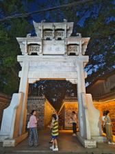 图为实践队员在六尺巷东西两边拍摄的石牌坊